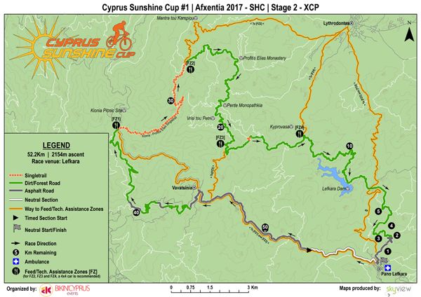 Etap 2. wyścigu etapowego Afxentia rozpoczyna się w centrum Lefkary, a po wspinaczce prawie na szczyt góry Macheras, kolarze powrócą do wioski przez zapierające dech w piersiach pojedyncze trasy i szybkie leśne drogi.