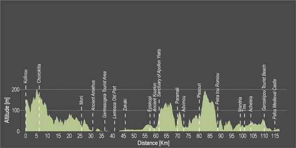 Этот маршрут протяженностью в 110 км рассчитан на сильных велосипедистов и полностью пролегает по старой трассе Лефкосия (никосия) – Лемесос (Лимассол) – Пафос.